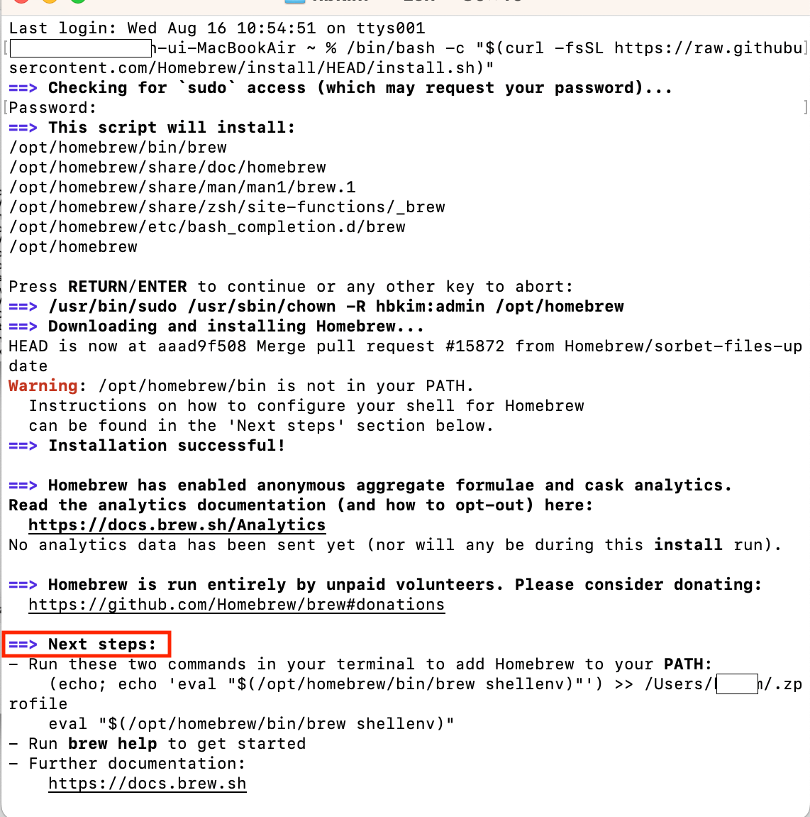 터미널 창을 열어서 위 명령어를 복사하여 붙여넣기를 하고 엔터를 누릅니다!