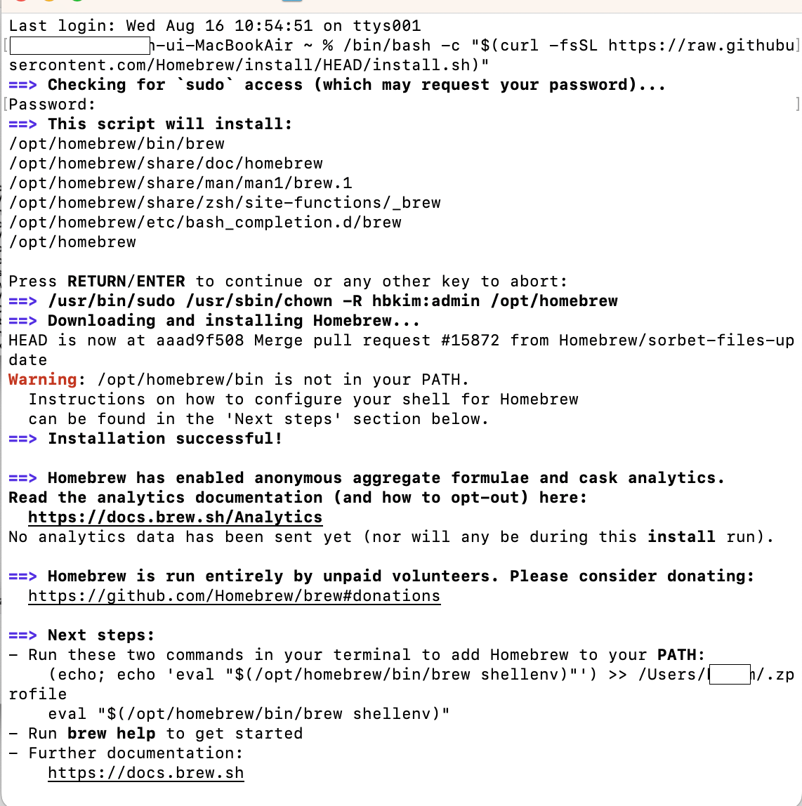 터미널 창을 열어서 위 명령어를 복사하여 붙여넣기를 하고 엔터를 누릅니다!